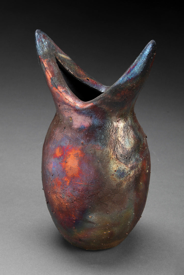 With a copper raku finish, this decorative vase would add a rustic metallic touch to your home. It is inspired by the open mouth of a baby bird.