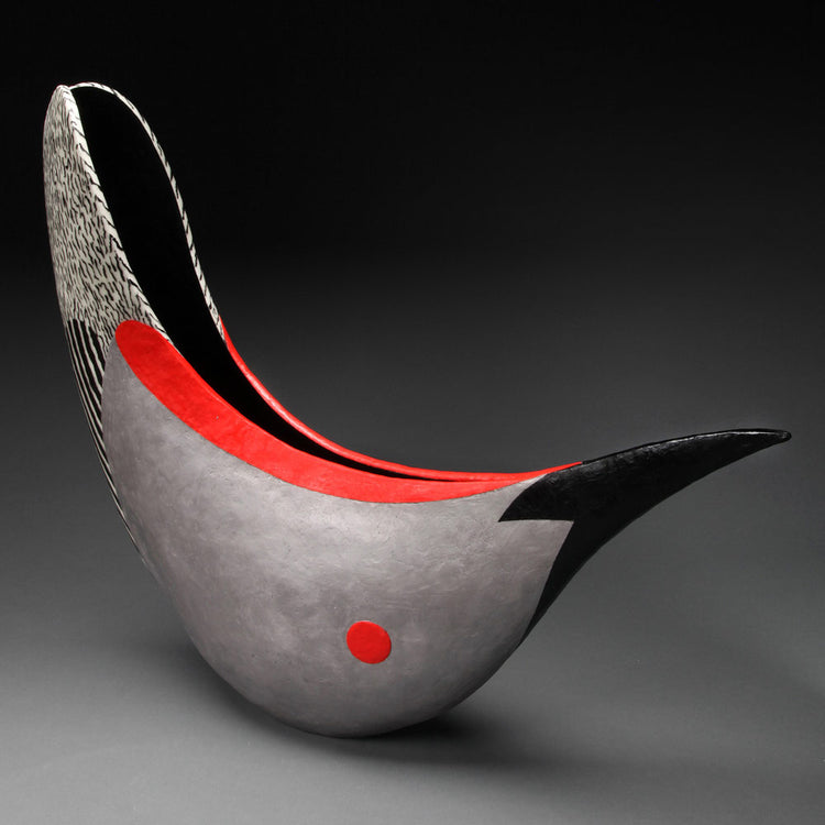 This stunning avian sculpture inspired by the brilliant coloring of the head of the Red-Throated Loon is the perfect statement piece for any home. The vibrant color and texture is achieved with acrylic paint and encaustic finish.