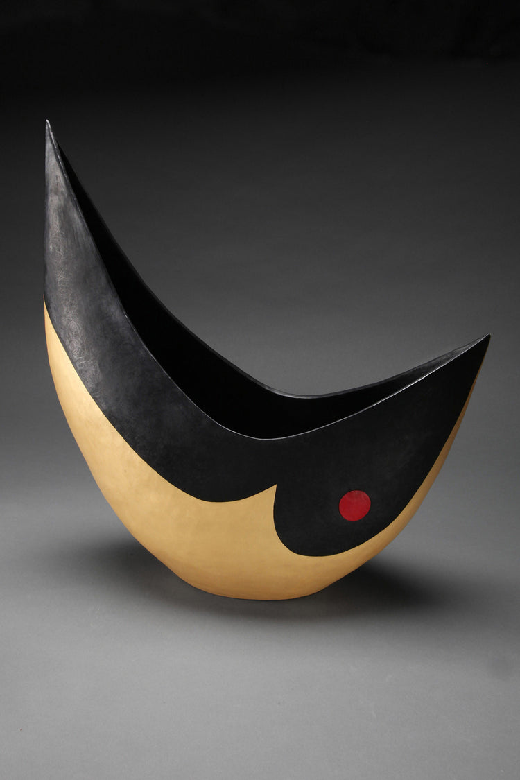 Enhance any room with this matte black and gold hand-sculpted decorative bowl inspired by the majestic coloring of the head of the Pacific Loon. This beautiful avian sculpture was finished with a unique encaustic wax technique, and would add a modern touch to any space.