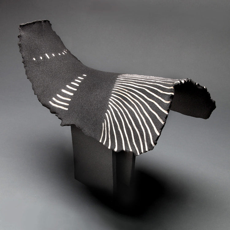 If you are looking for a unique, abstract sculpture with a bold pattern to complete your decor, this one is for you. Made with black underglaze with a pop of white on clay, it is inspired by the pattern and color of the Common Loon back.